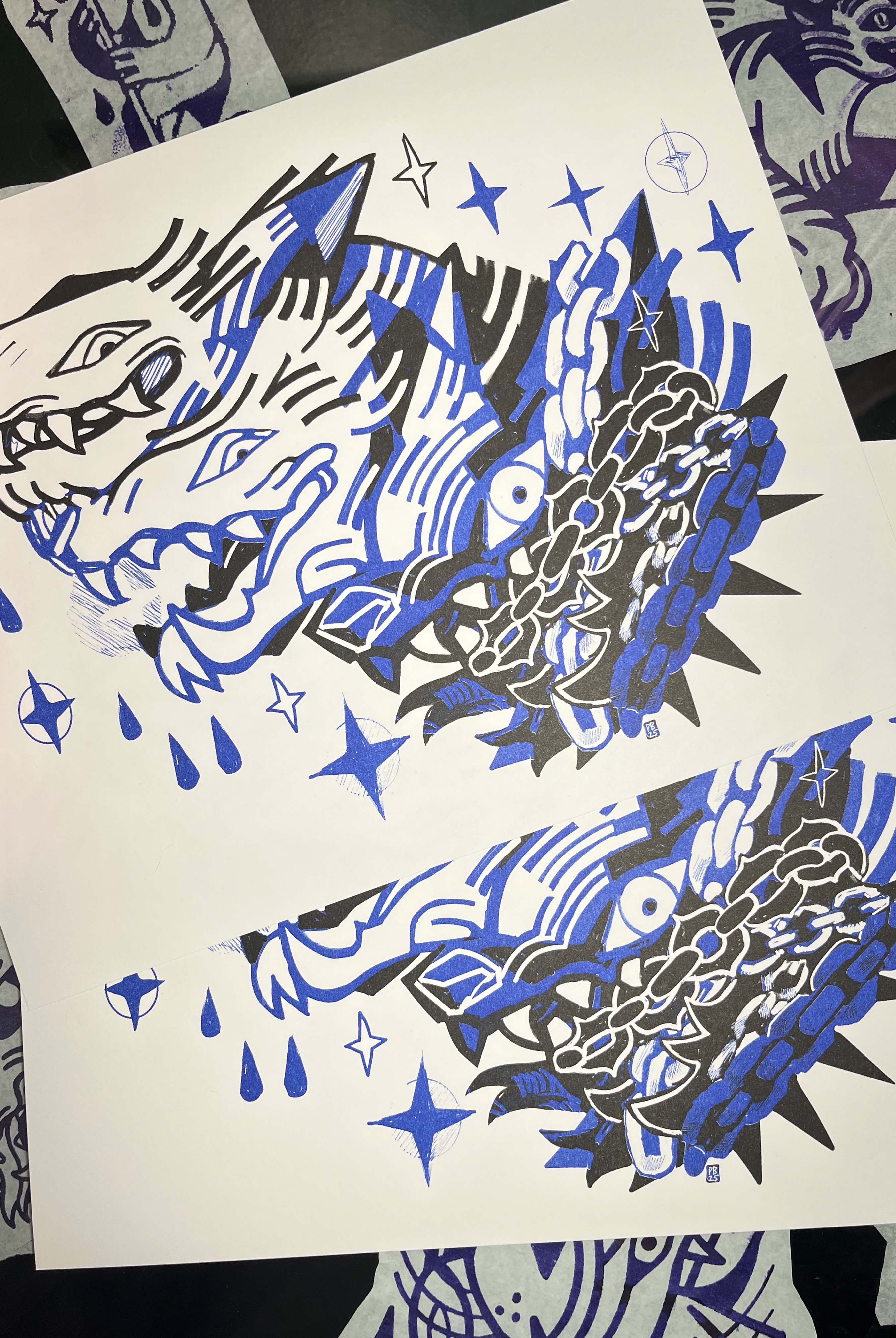 8"x10" 2-colour risograph print on heavyweight cardstock paper